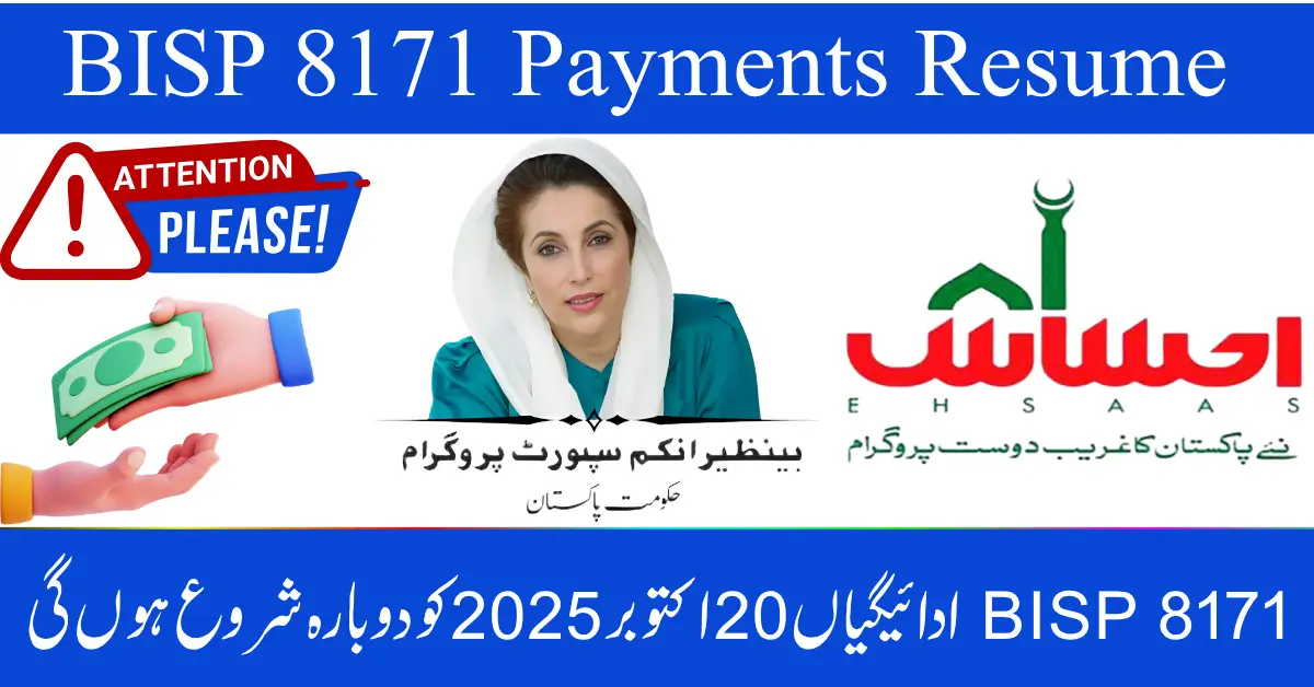 The BISP 8171 October 2025 payment rollout is a major step toward economic empowerment for the country’s poorest families. If you’re a registered participant, make sure to check your eligibility and payment status before October 20 to avoid delays.