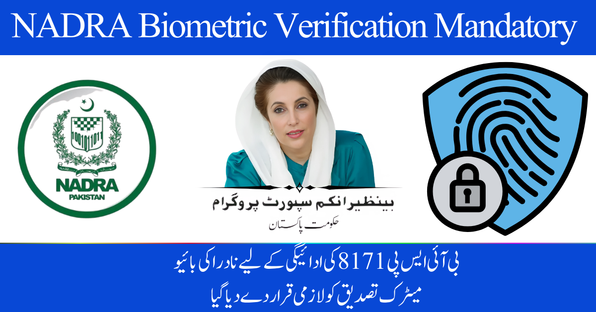 Beneficiaries registered under Benazir Income Support Programme (BISP) must visit their nearest NADRA office or designated payment center for biometric verification. Without this verification, the 8171 BISP payment cannot be processed.